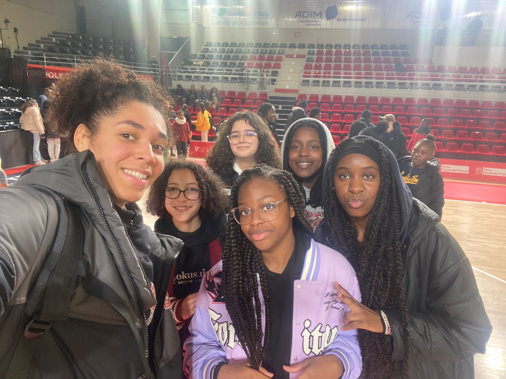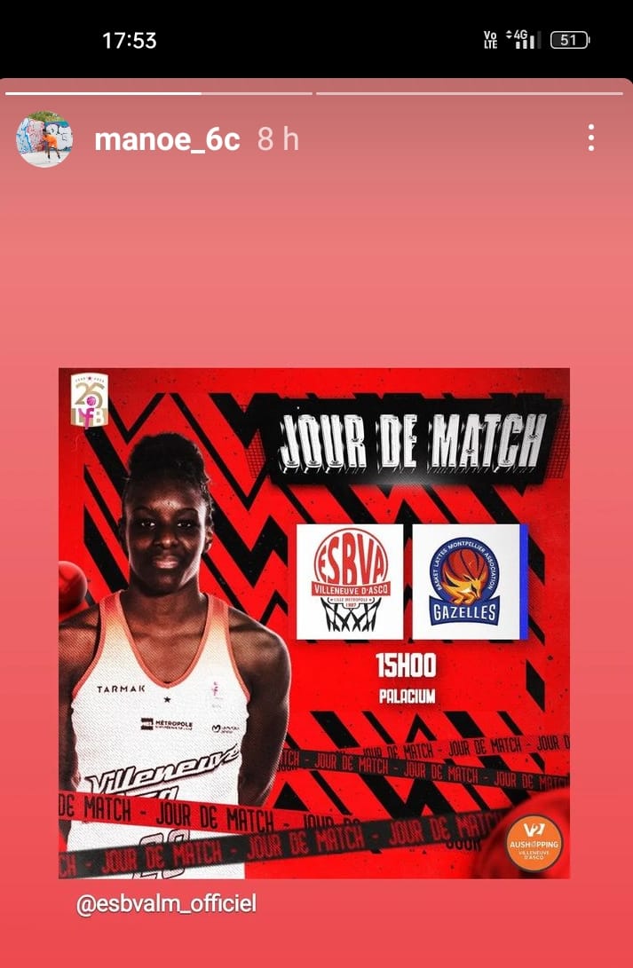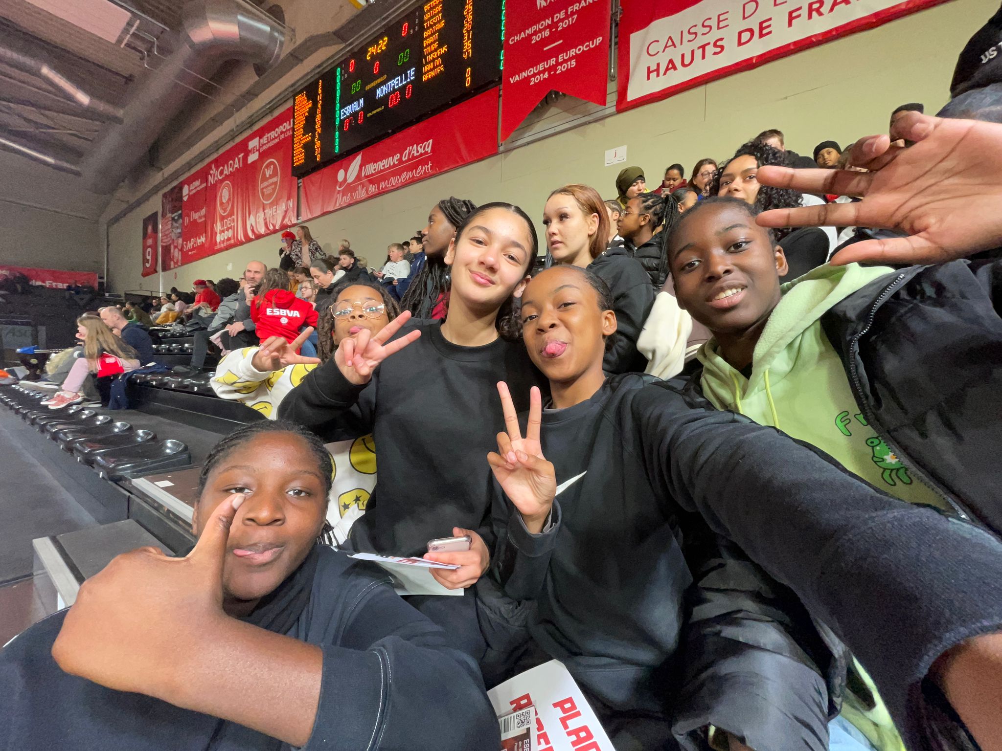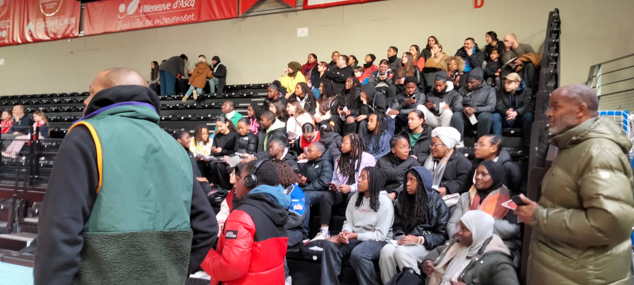 professionnel féminin de basket (LFB) opposant Villeneuve d'Ascq à Lattes Montpellier, une délégation de l'EVOB composée d'une trentaine de personnes (jeunes joueuses, coachs, dirigeants et OTM du club ainsi que quelques parents) a fait le déplacement pour aller voir ce duel pour la troisième place du classement et aussi pour encourager la jeune meneuse de Villeneuve d'Ascq Manoe Cisse qui a fait quelques années avec l'Est Val d'Oise Basket avant d'intégrer la filière de haut niveau.